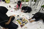 Petugas NADI, Puan Harwani memberi penerangan ringkas mengenai aktiviti yang akan dijalankan pada kali ini. Peserta dibahagikan kepada 3 kumpulan dan mereka telah melakukan pencarian maklumat di google untuk mendapatkan idea untuk menghasilkan corak rekaan. Mereka diberikan barangan yang bersesuaian dan diberikan tempoh masa yang mencukupi untuk bersama-sama melengkapkan tugasan sambil dibantu Petugas NADI