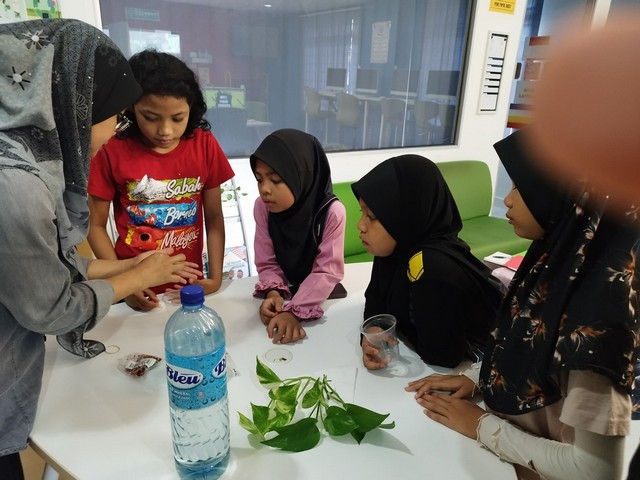 Petugas NADI menyediakan beberapa bahan seperti crystal mud water bubble, bekas kaca, pokok bunga, cawan plastik dan air. Pelajar menjalankan aktiviti ini secara berkumpulan dan mereka dapat melihat sama ada tumbuhan berjaya hidup menggunakan bahan yang diberikan