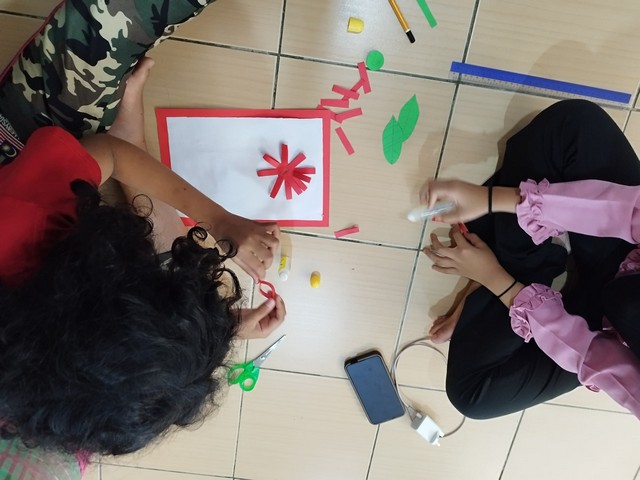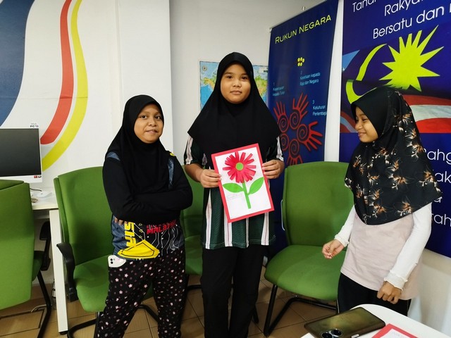 Pelajar diminta untuk menghasilkan rekaan bunga menggunakan kertas berwarna secara berkumpulan. Pada permulaan, petugas membuka video tutorial di channel youtube untuk panduan pelajar dan mereka diberikan masa yang mencukupi untuk menyiapkan tugasan. Diakhiri sesi, pelajar diminta untuk membuat pembentangan hasil kerja.