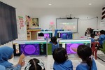 Ketiga : Aktiviti dalam kumpulan dimana pelajar diminta untuk berkumpul di skrin utama untuk latihan Matematik - operasi tambah. Pelajar dapat mengira bersama-sama dan memilih jawapan yang tepat. Kelas diakhiri dengan sesi tayangan video senaman Chicken Dance dan video Didi and Friends.