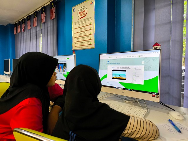 Pelajar yang hadir dibantu untuk mendaftar akaun ekelas dan petugas NADI menerangkan kandungan ekelas merangkumi video mengikut subjek, cara menjawab kuiz dan aktiviti yang akan dijalankan.