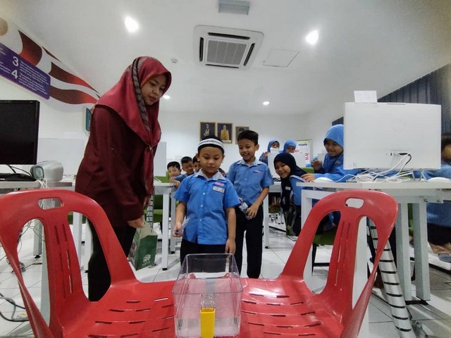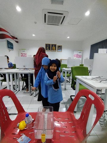 Bagi aktiviti kedua, setiap pelajar diminta untuk memilih barangan yang telah disediakan dan perlu memasukkan barang tersebut ke dalam bekas air yang disediakan. Pelajar dapat melihat secara langsung hasil eksperimen tersebut samada barangan tersebut terapung atau tenggelam. Kemudian, pelajar diminta untuk berkumpul di skrin utama dimana mereka perlu membuat latihan pembelajaran secara berkumpulan. Petugas menggunakan applikasi wordwall.net dan pilihan topik pada sesi kali ini adalah tambah - tolak sehingga 20. Pelajar diminta untuk mengira dan memberikan jawapan yang tepat.